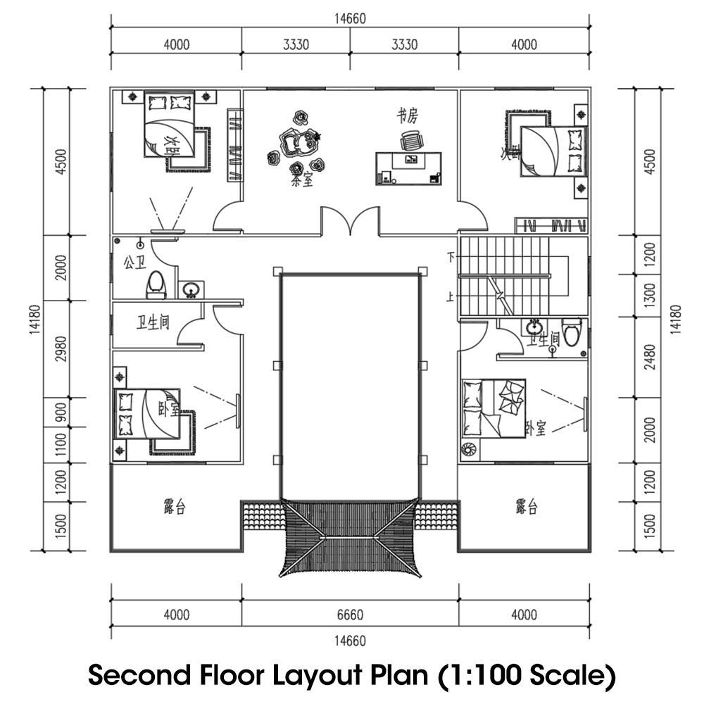 Chinese-style Villa, Second Floor, 6 Bedrooms, 2 Living Rooms, 1 Kitchen, 6 Bathrooms, 344 sqm